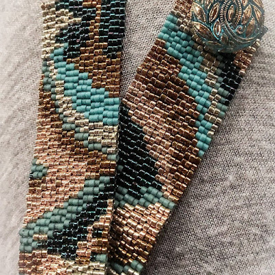 Today's a finished bracelet. It's only 0.75" (1.8 cm) in width, an easy and quick to bead. I had really fun with beading it.